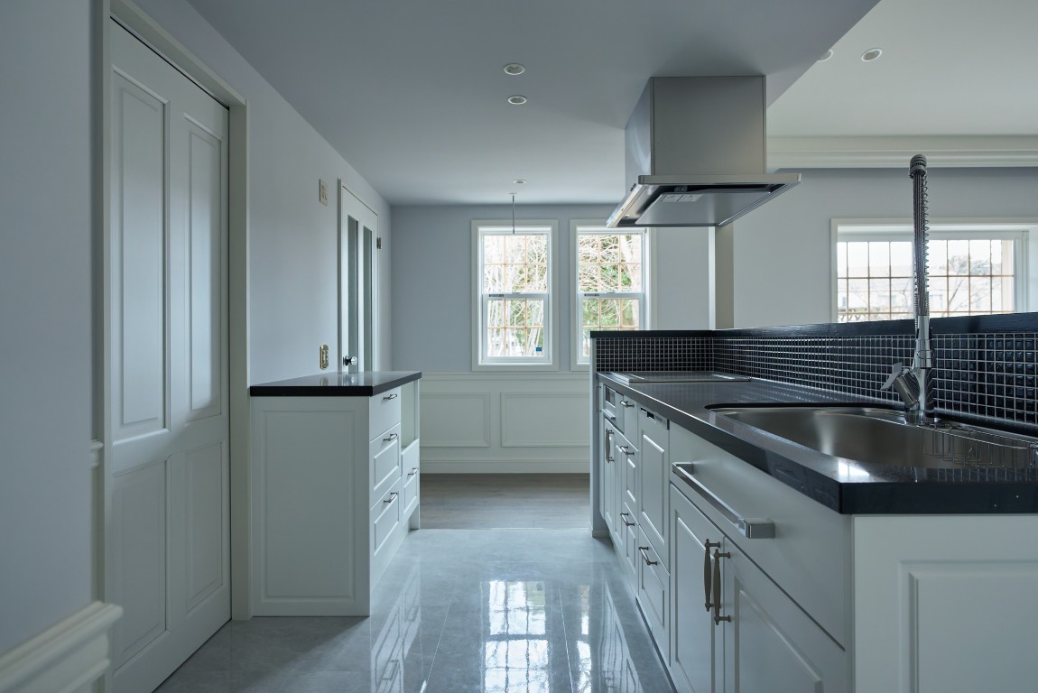 各所にこだわりの素材を取り入れ、キッチン・洗面・収納家具類は統一感のあるデザインで造作しています。
