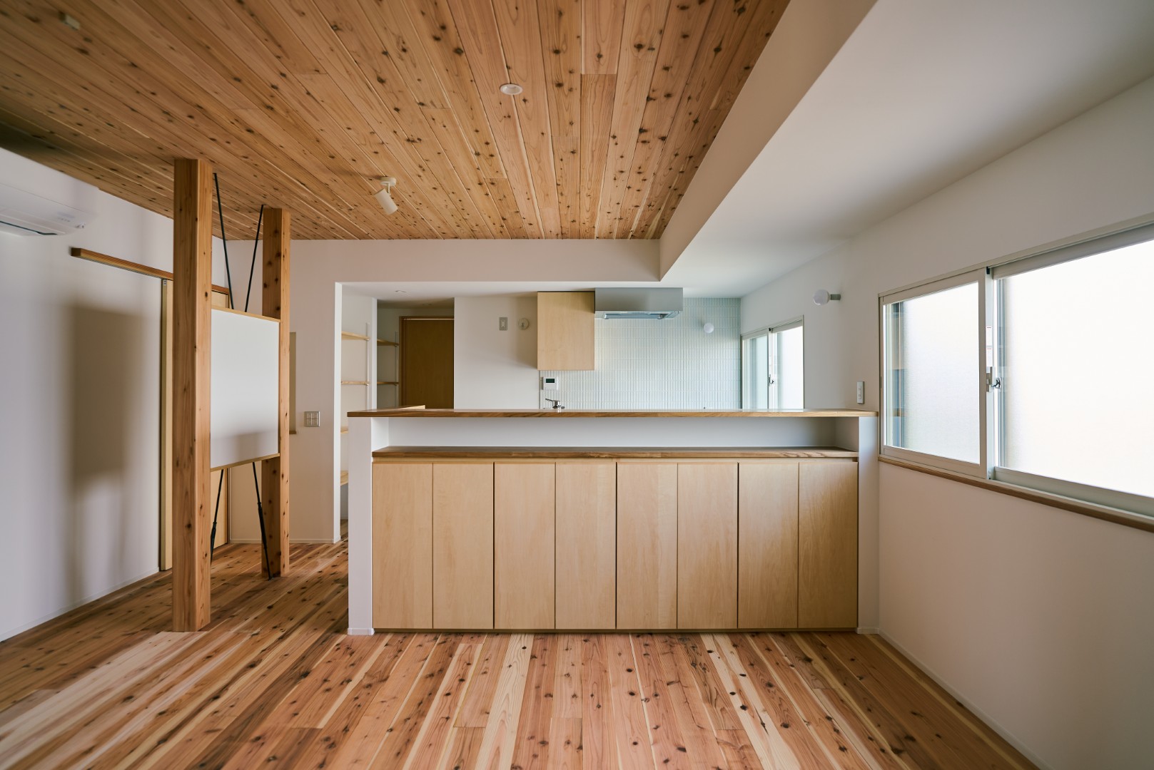 肌触りの良い無垢フローリングや、調湿効果のある卵の殻の壁など、自然素材に包まれた心地よい空間が広がります。